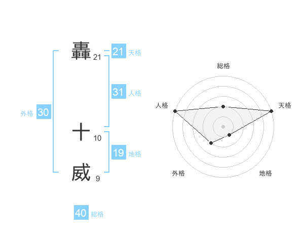 轟 十威さんの天格は21画の5点!