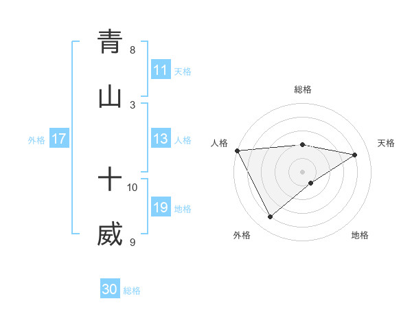 青山 十威さんの総格は30画の2点!