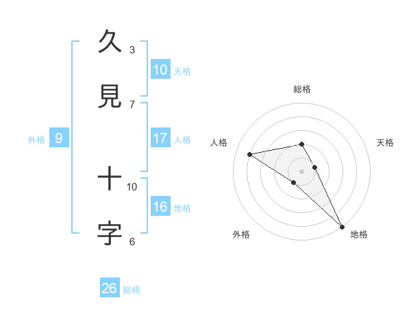 久見 十字さんの総格は26画の2点!