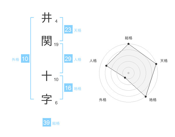 井関 十字さんの総格は39画の5点!