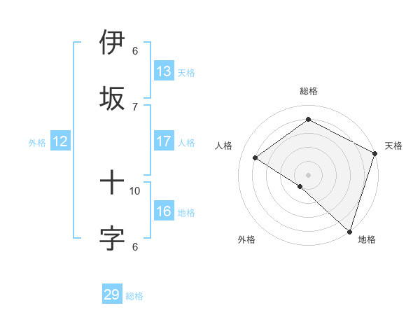伊坂 十字さんの天格は13画の5点!