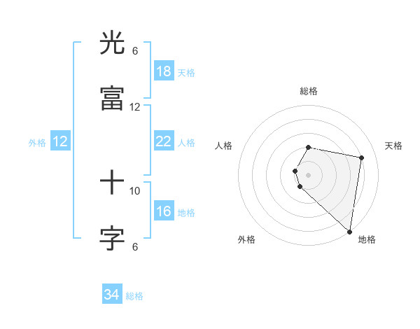 光富 十字さんの総格は34画の2点!