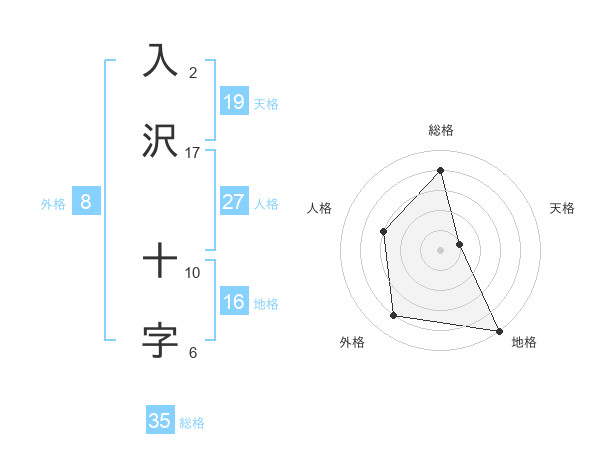 入沢 十字さんの総格は35画の4点!