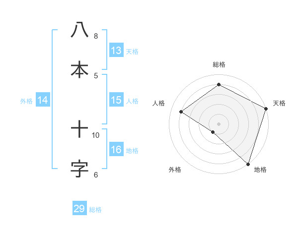 八本 十字さんの総格は29画の4点!