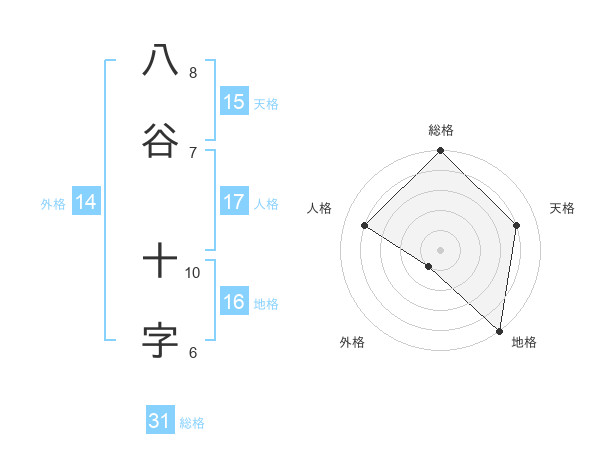 八谷 十字さんの総格は31画の5点!
