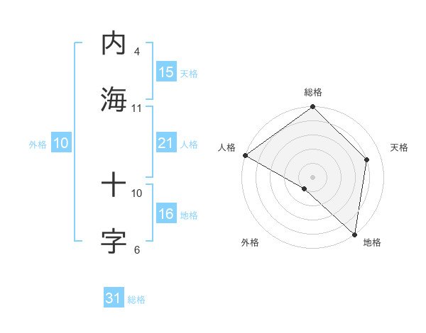 内海 十字さんの人格は21画の5点!