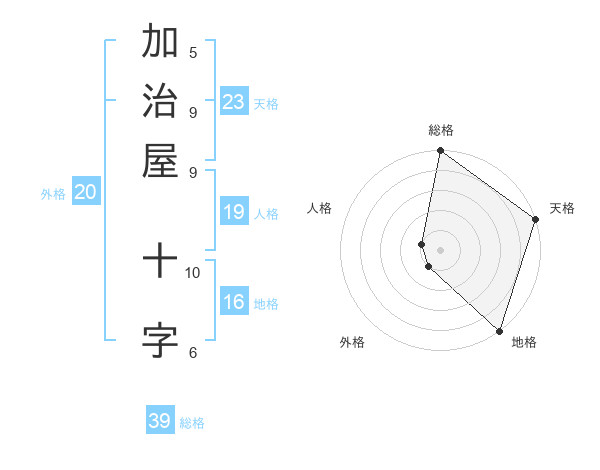 加治屋 十字さんを姓名の画数から五運を鑑定