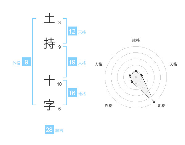 土持 十字さんの地格は16画の5点!
