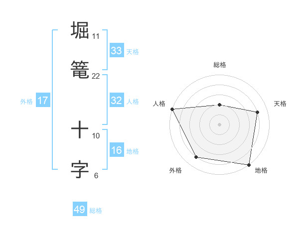 堀篭 十字さんの外格は17画の4点!