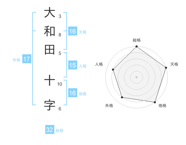 大和田 十字さんの総格は32画の5点!