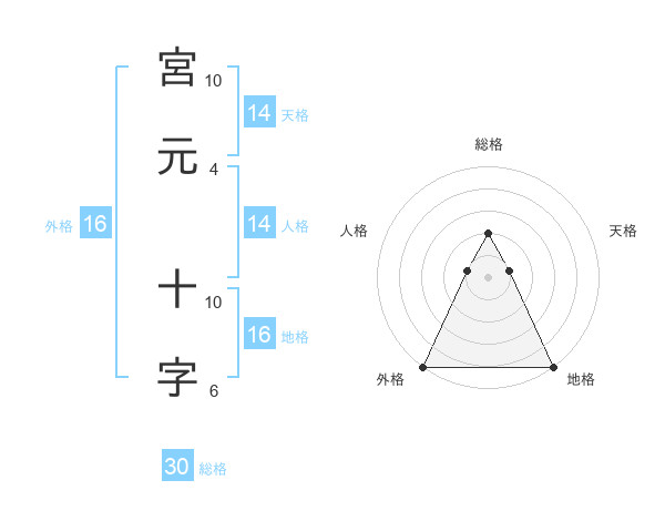 宮元 十字さんの総格は30画の2点!