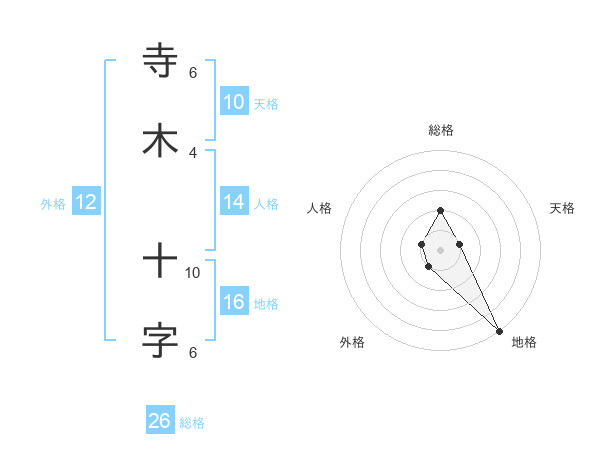 寺木 十字さんの総格は26画の2点!