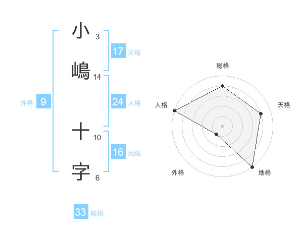 小嶋 十字さんを姓名の画数から五運を鑑定