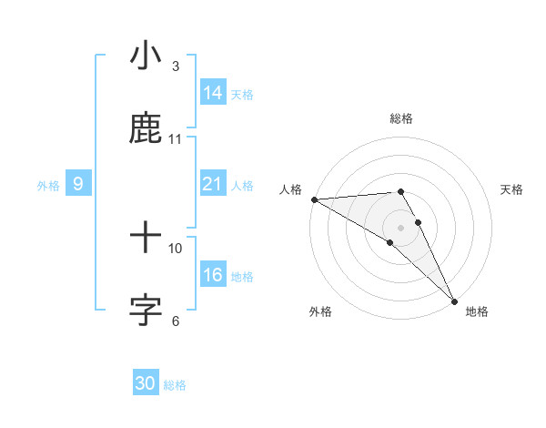 小鹿 十字さんの総格は30画の2点!
