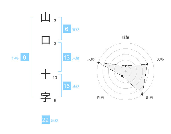 山口 十字さんの総格は22画の1点!