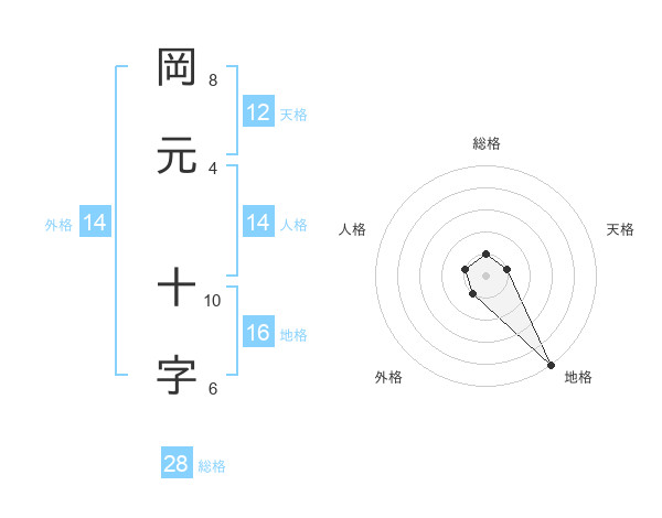 岡元 十字さんの総格は28画の1点!