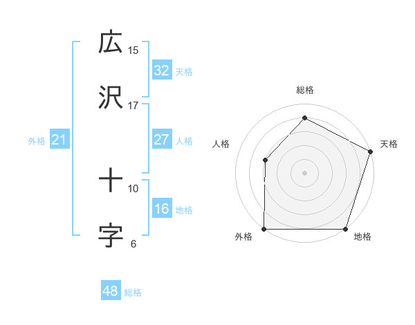 広沢 十字さんの外格は21画の5点!