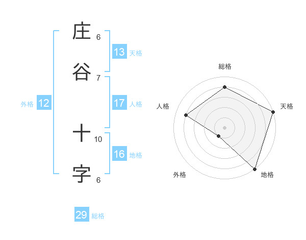 庄谷 十字さんを姓名の画数から五運を鑑定