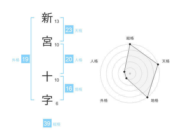 新宮 十字さんの天格は23画の5点!