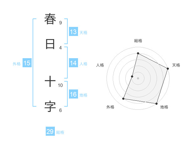 春日 十字さんの総格は29画の4点!