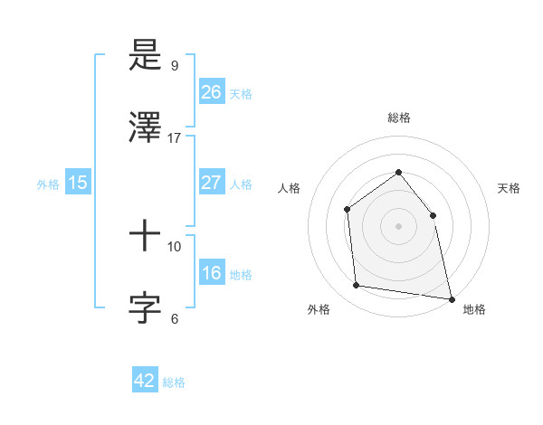 是澤 十字さんの地格は16画の5点!