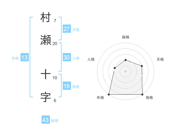 村瀬 十字さんの外格は13画の5点!