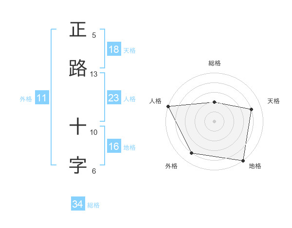 正路 十字さんの地格は16画の5点!