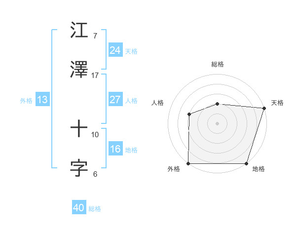 江澤 十字さんの外格は13画の5点!