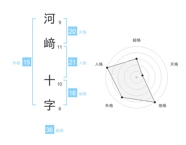 河﨑 十字さんの天格は20画の1点!