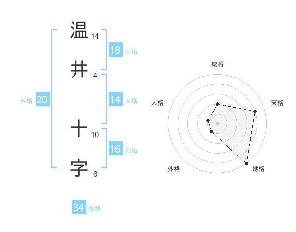 温井 十字さんの総格は34画の2点!