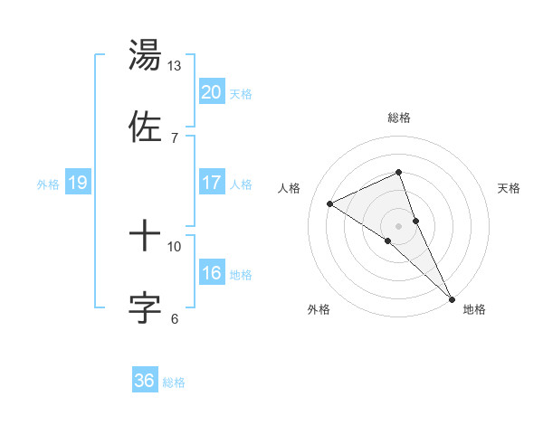 湯佐 十字さんの総格は36画の3点!