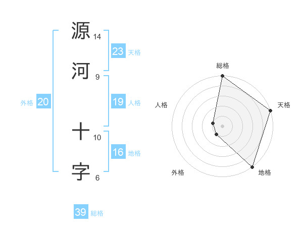 源河 十字さんの総格は39画の5点!