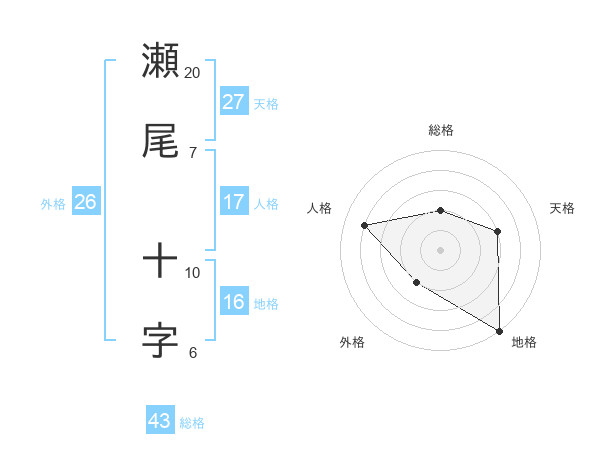 瀬尾 十字さんを姓名の画数から五運を鑑定
