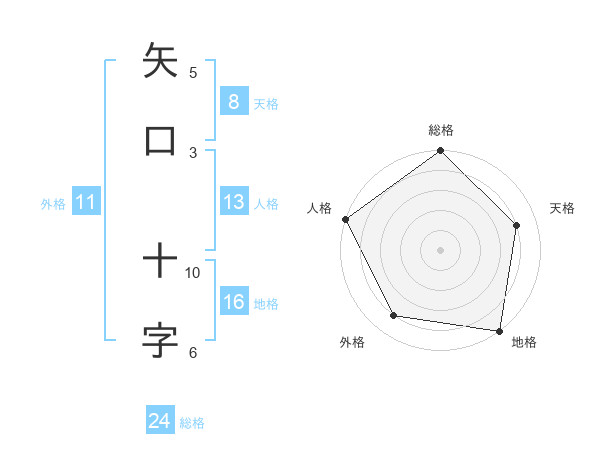 矢口 十字さんの天格は8画の4点!