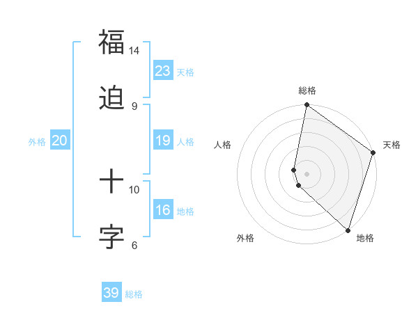 福迫 十字さんの天格は23画の5点!