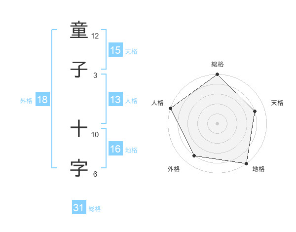 童子 十字さんの総格は31画の5点!