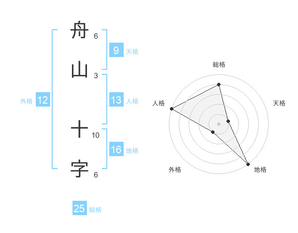 舟山 十字さんの地格は16画の5点!