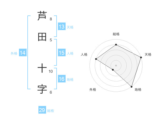 芦田 十字さんの天格は13画の5点!