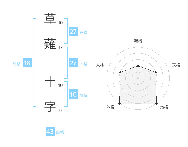 草薙 十字さんの外格は16画の5点!