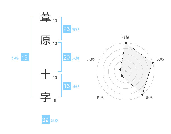 葦原 十字さんの総格は39画の5点!