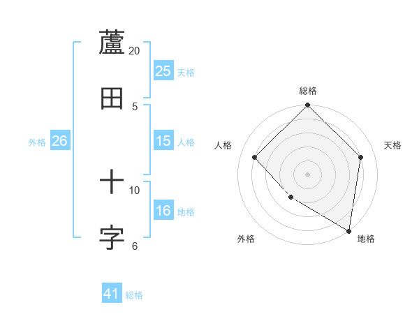 蘆田 十字さんの天格は25画の4点!
