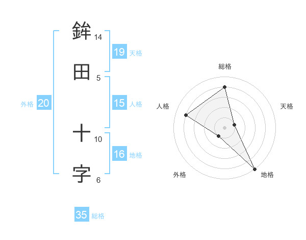 鉾田 十字さんの地格は16画の5点!