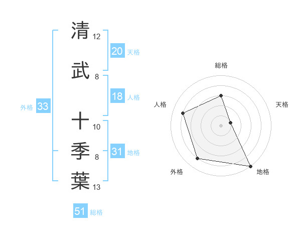 清武 十季葉さんを姓名の画数から五運を鑑定