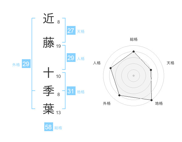 近藤 十季葉さんを姓名の画数から五運を鑑定