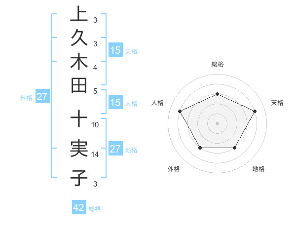 上久木田 十実子さんを姓名の画数から五運を鑑定