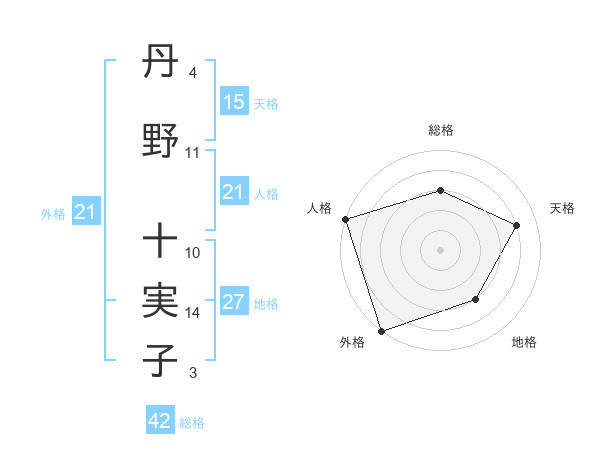丹野 十実子さんを姓名の画数から五運を鑑定