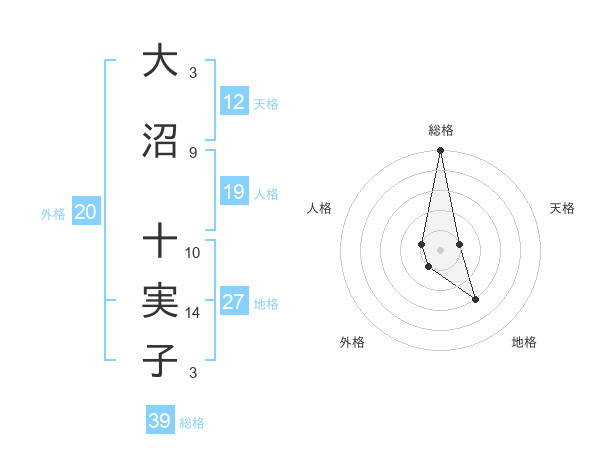 大沼 十実子さんを姓名の画数から五運を鑑定