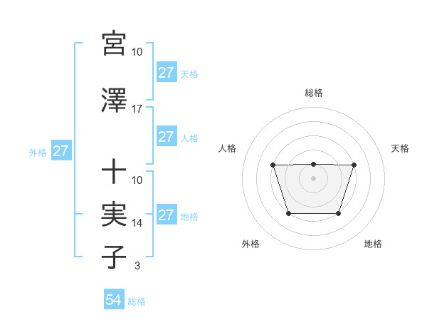 宮澤 十実子さんの人格は27画の3点!