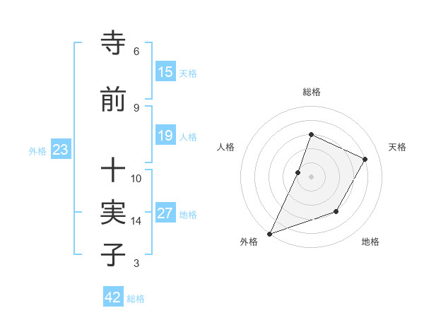寺前 十実子さんを姓名の画数から五運を鑑定
