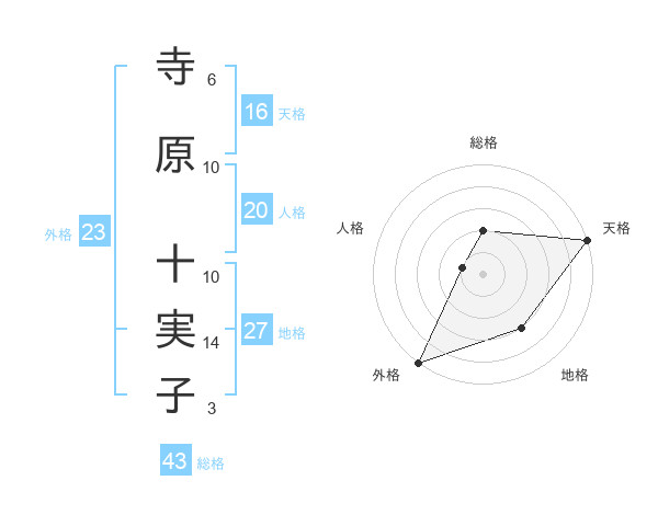寺原 十実子さんの天格は16画の5点!